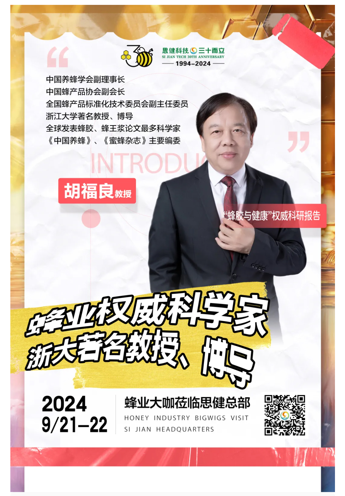 國(guó)家蜂業(yè)崗位科學(xué)家胡福良教授來(lái)廈做“蜂膠與健康”科普講座