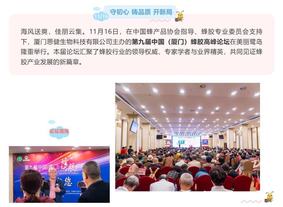 思健生物科技誠邀您共赴廈門出席第九屆中國(廈門)蜂膠高峰論壇:與蜂業(yè)權(quán)威面對(duì)面,洞見蜂膠國際新未來